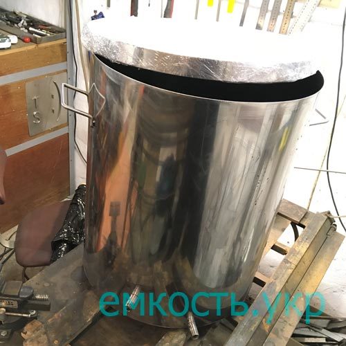 Бочка из пищевой нержавейки 107 литров с уклоном дна и двойной крышкой