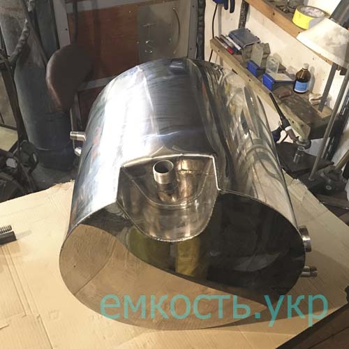 Бочка из пищевой нержавейки AISI304 с водяной рубашкой, сливным штуцером 1 дюйм, резьбой под тэн 1,1/2 дюйма, заливним и сливным штуцером под воду. Толщина метала 2 мм. Водяная рубашка объемом — 37 литров, внутренний объем — 30 литров.
