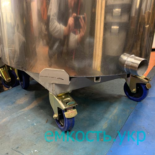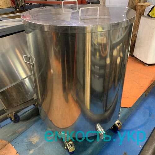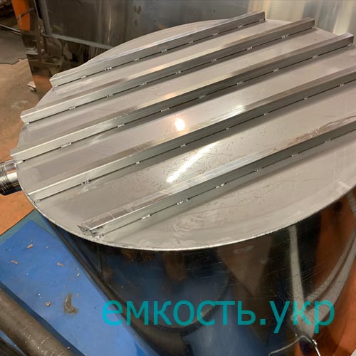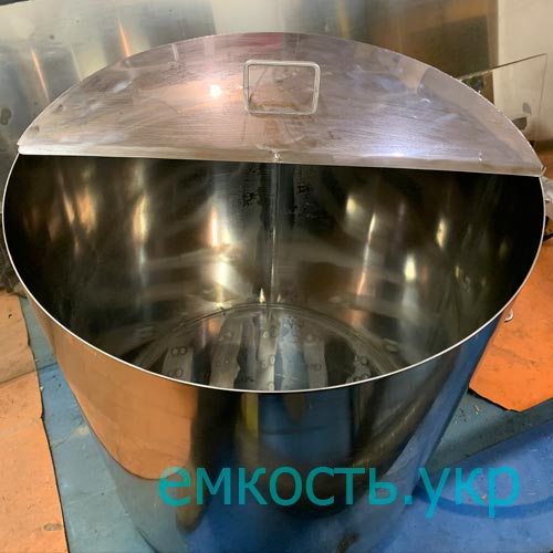 Бочка с половинчатой крышкой и дном с ребрами жесткости с штуцером 2 дюйма, из пищевой нержавейки AISI304, толщина метала 2 мм.