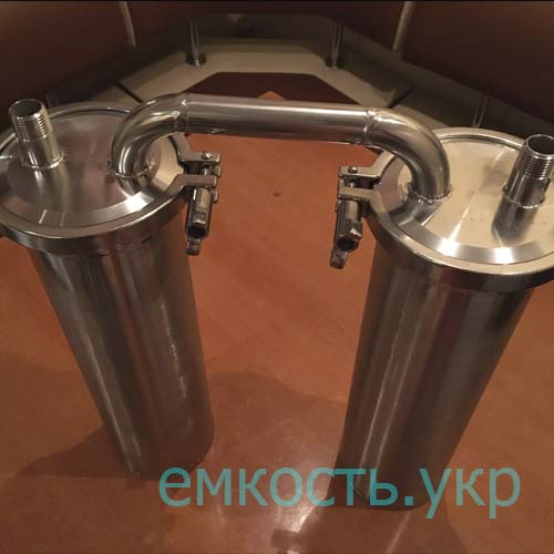 Сухопарник спареный из пищевой нержавейки AISI304 с клампами 100 мм.
